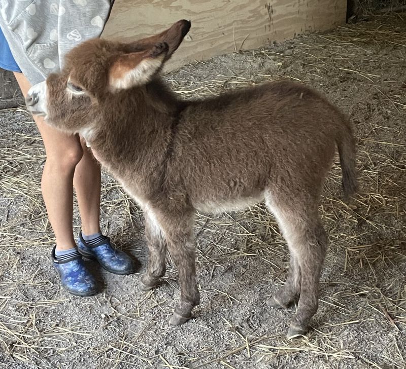 sweet girl the home she deserves. Sana (Rescue) -Adopted - (2020) Sana came to us with a group of jennies that we purchased out of unfortunate circumstances. She is at least partially blind on one eye. She is a super sweet girl and woolly to top. She will make a wonderful pet and companion. She is still a young girl and beautiful in her winter coat. In the left picture she is down to her summer fur - right one she still had some winter fur. Valera (Rescue) - Adopted - (2019) Age: unknown - but she is an older jenny that we think was probably bred with her entire life and wasn't properly cared for. In our opinion she should have been retired way before now or better taken care of. We purchased her so this wouldn't have to happen again - she absolutely deserves retirement - she is the sweetest girl though that loves any attention she can get. Sidi and her little jack foal Sebastian (not a rescue but Special Needs)
