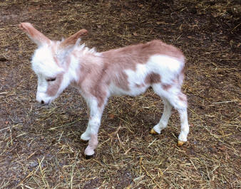 Harli - Update: Harli gave birth to an adorable little FSW - light red based boy (Alzan) out of I-C-Hot Ice on 14. September 2019. Harli is Karena's jenny and Karena couldn't be happier with this little guy. He is a friendly, wiggly little guy. Luckily it is a boy, otherwise Karena would be keeping the baby. He almost has the same pattern and color as Tickled Pink's boy. He is a beautiful baby all around! This little guy is offered on our for sale page... Alzan is sold! Patty - Update: Patty gave birth to an adorable very dark girl (Nayeli) out of Tomahawk on - yes, Friday the 13. September 2019. 3 babies in one day was a lot! Patty as always is a relaxed mom that just adores her baby. We also adore her baby - she is a sweetheart just like her mom! Nayeli is sold! Nayeli is sold! Bachata - Update: Bachata gave birth to a cute little dark gray/brown jack (Rodrigo) out of I-C-Hot Ice on 13. September 2019. He is still a bit shy after one of the other new moms attacked him when he was just two days old. He didn't get hurt but she kicked him and he fell and rolled over making him really afraid, also of the other donkeys. He is such a cute, stocky little bundle of fluff with a super wide dorsal stripe. At one week of age he is now pretty friendly and got over being shy. He is fine with the other donkey moms except with the one that attacked him. He leaves when she comes close. Rodrigo is sold! Rodrigo is sold!! Piper - Update Piper gave birth to an adorable little spotted girl (Amari) out of Cash on 13. September 2019. Piper did not look like she was about to foal and we missed the birth. The baby was several hours old and dry when we found her the next morning with a mom that didn't have a drop of milk. I fed the baby colostrum right away hoping we were still within the critical window. We gave mom some medicine to bring in her milk which happened a few hours later - up till then we syringe fed the baby. We are hoping that she got the antibodies she needs to fend off any illnesses. Mom still doesn't have a whole lot of milk but hopefully enough to keep her healthy. The next 3 - 4 weeks will be critical. It will be good for the baby to learn to eat solid foods early and she is interested in tasting it. Amari is sold... Amari is sold... Zinnia - Update Zinnia gave birth to a little red (Terra Cotta) girl out of Firecracker on 5. Sept. 2019, about 3 weeks early, as many of our fall babies usually arrive early. She is adorable and all girl with the softest fur. She enjoys her scratches every time she gets a chance! Color doesn't show up well in some of the pictures. Sold Terra Cotta is sold! Allyson - Update: We were very worried about Allyson because she was the last one of our rescues to give birth. She came here really skinny and pregnant, and then fought an hoof abscess about 6 weeks before she gave birth. We didn't know when she was bred for and when she really bagged up 6 weeks before we thought she would foal within a couple of days. Her bag over the course of a good week simply disappeared and she looked even skinnier. She laid down a lot because of her painful foot. We thought for sure something had happened to the baby and watched her very close to make sure she didn't get into trouble. She is an older jenny, too. 5 weeks later when it seemed like she was getting even thinner we started supplementing her with grain twice a day. She almost immediately started making a bag again, and this time she foaled a healthy beautiful boy a few days later! We realized she didn't care much about the orchard grass hay we feed to our moms in waiting. She has been eating a lot more mixed grass hay since she foaled and we will continue supplementing her with grain twice a day. Her little boy (Kijan) was born on 31. August 2019 and we can't help but fall in love with him. He is a stocky little guy that is super friendly! We just want to cuddle him all of the time and he is the same way! He is always there to receive his cuddles! Kijan is sold! Kijan is sold! Tickled Pink - Update: Tickled Pink did it again - another frosted spotted white baby. She gave birth to a simply adorable little red based FSW fluffy boy (Powerball) out of Cash on 30. August 2019 - about two weeks early. He came out with a really bent ear - but it straightened up within a couple of days. He certainly has personality and already bugged his mom at a couple of days of age as can be seen in the photos. At one week of age he was already instigating play with the much older babies. First row of pics at a couple of days of age, others at 3 weeks. Powerbal is Sold. Powerball is sold!! Pedrizia - Update Pedrizia gave birth to a little gray boy (Emilio) on 29. July 2019. He is just one day old and below is a newborn picture of him as he greeted us the first thing in the morning. All signs had pointed to that mom was not due for another few days. Though we missed his birth both mom and baby seem to be doing just fine. He is such a loving boy and comes to us every time he spots us. Emilio is sold... Emilio is sold...